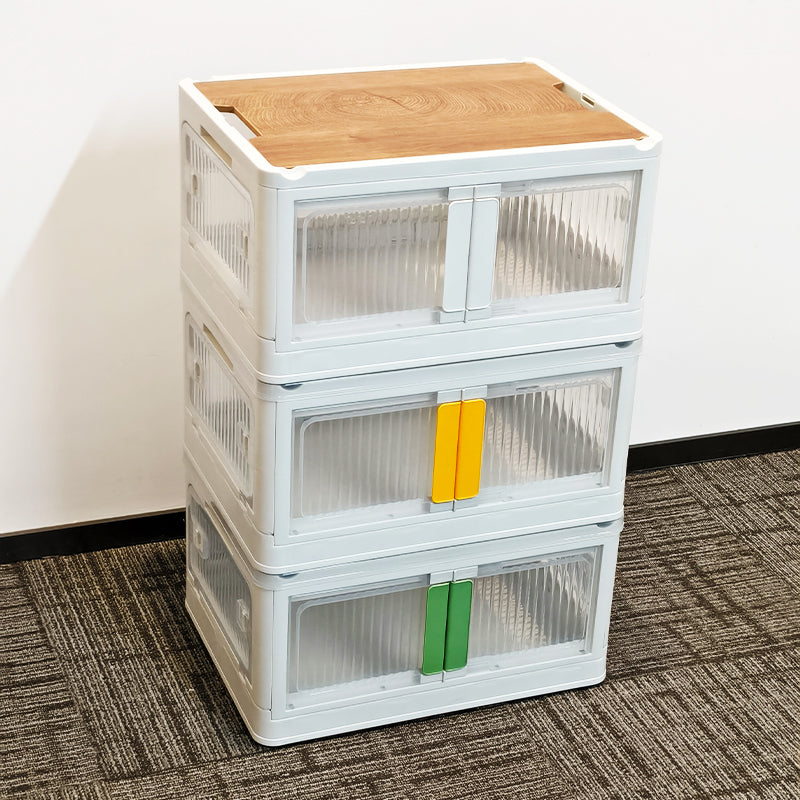 蓋にプーリーが入れる溝付き、同じサイズのボックスを安定して積み上げられる設計。縦の空間を活用し、整理整頓がさらに楽に!荷崩れの心配も少ないです。